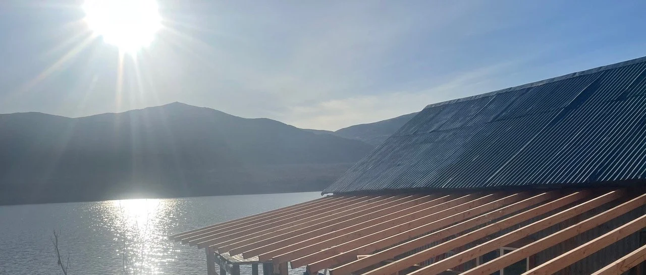 The lodge is located in the village of Larsen Bay, Alaska. It is steps from the ocean and a stream called Humpy Creek where salmon spawn and the locals fish.